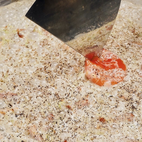 通常のもんじゃとは違い、1つ1つの食材のうまみを出しながら作り上げるおこげもんじゃは格別!!