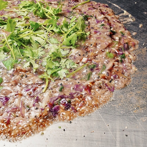 写真は納豆×ゴルゴンゾーラもんじゃ。たくさんの変わり種ご用意しております!現在メニュー開発中。