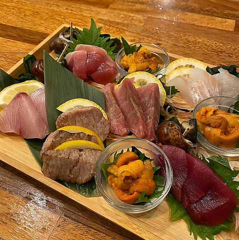 アジア圏を中心に日本食の店舗をプロデュースしてきた店主の料理は、独自の製法で仕上げた<熟成鶏肉の唐揚げ>や<手羽先の一夜干し>、ピリ辛のたれで韓国風に味付けした<<サーモンユッケ>など、どれも食欲を誘う料理ばかりでお酒との相性も◎
