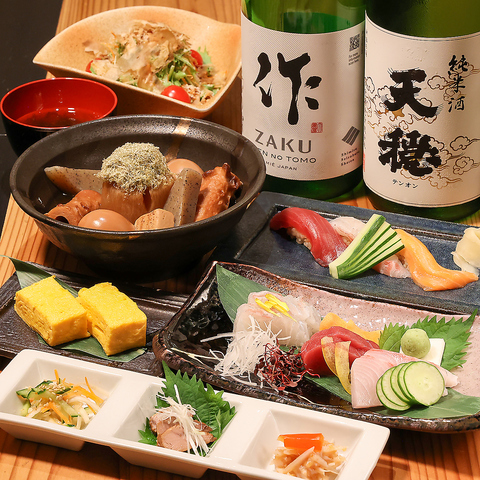 だしに本気のせいりき家がこだわり抜いた出汁を味わえる、当店の定番コース。伊勢志摩産の高級あおさや手火山式焙乾鰹節のおでんもお楽しみいただける、会社宴会などにぴったりのコースです。飲み放題付きで税込5,000円のため、忘年会や新年会・歓迎会や送別会といったシーンには最適です。