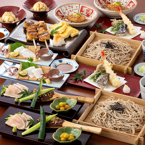 季節の旬の食材を使用した当店自慢の料理を様々堪能できる、至福のコースをご用意しております。新鮮なお刺身、名物のお蕎麦などどれも絶品で、お腹も心も大満足になります♪2時間飲み放題付き。お一人様+500円増で特選地酒三種も飲み放題にできます◎ご宴会など様々なシーンでご利用ください!