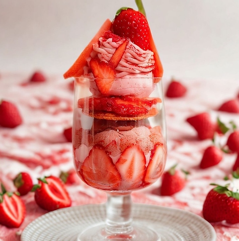 苺を主役に、ライチのムースやフィヤンティーヌショコラ、ココアスポンジを重ねたレイヤードパフェ。 チョコレートアイスとソースのコクに、苺アイスといちごクリームの爽やかさが調和。 キャラメリーゼパイの香ばしさと白あん入りいちごクリーム、苺チュイールの食感まで楽しめる一杯です。