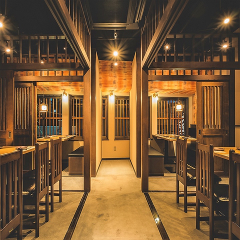 個室のテーブル席は2名様~6名様までご利用頂けます!仕切りがあり、空間も広いので周りを気にせずごゆっくりお寛ぎ頂けます!大人の上質空間で雰囲気の抜群なお部屋を多数ご用意しております!気軽にご利用頂けるカウンター席もございますので心行くまでお楽しみ下さい。《焼き鳥・肉・海鮮・もつ鍋・牡蠣》