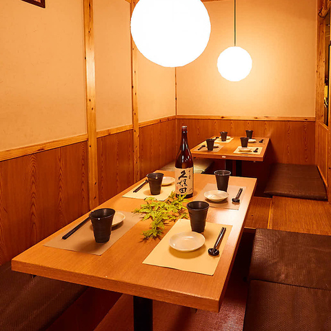完全個室となっておりますので、お客様のどんなニーズにも幅広く対応可能です。落ち着いた和モダンなプライベート個室空間で、美味しい料理と美味しいお酒を楽しみながら素敵な時間をお過ごしください。