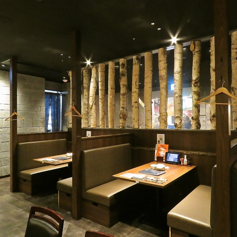 JR広島駅南口より徒歩3分の好立地で飲み会の集合解散に便利です。ダークトーンでまとめられ落ち着いた雰囲気の店内は、ゆったり会話や食事ができる個室も完備。