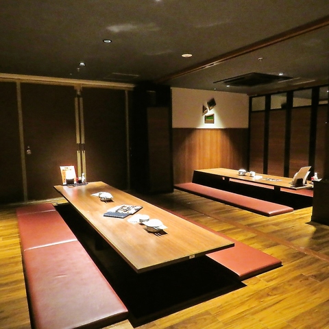 大人数での宴会に最適な居酒屋として、広々としたテーブル席をご用意。飲み放題付きコースも充実しており、個室の利用も可能です。設備や環境が整っているので、幹事様が安心してご予約いただけます。