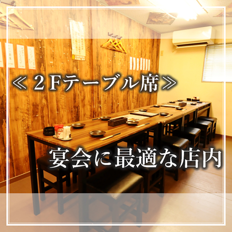 ≪2Fテーブル≫2階のお席です。12名~20 名席。横並びで飲食をお楽しみ頂けます。スタッフ常駐でドリンク提供もスムーズです。