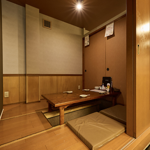 4名から6名様まで利用可能な掘りごたつの個室がございます。また、お隣の掘りごたつのお席も12名様の場合は個室として利用可能です。座り心地の良い座布団もご用意しておりますのでリラックスしてお食事をお楽しみいただくことができます。個室としての利用は人気なのでご予約はお早めに。