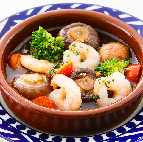 ムール貝・あさり・ムキエビ・イカ・つぶ貝の入ったISOMARUの具だくさんアヒージョは旨味がたっぷりでたまらない一品です!白ワインなど、お好きなお酒とご一緒に是非ご賞味ください♪