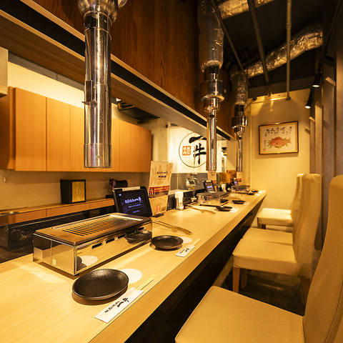 【カウンター席】大切な日におすすめのカウンター席。お肉をスライスするのはお客様のご注文をいただいてから。肉の旨さを最大に生かす包丁の技をご賞味ください。すべてに贅をつくしたおもてなしで、忘れられないひとときをお約束します。コースご予約でスパークリングワインボトルプレゼント!⇒詳細はクーポンページへ◎
