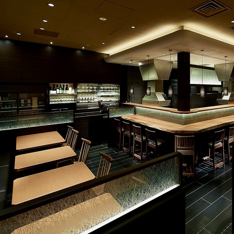 落ち着いた和空間で、旬食材をそのまま戴く高級串カツ。広々テーブル席は仲間との食事、女子会にも最適。