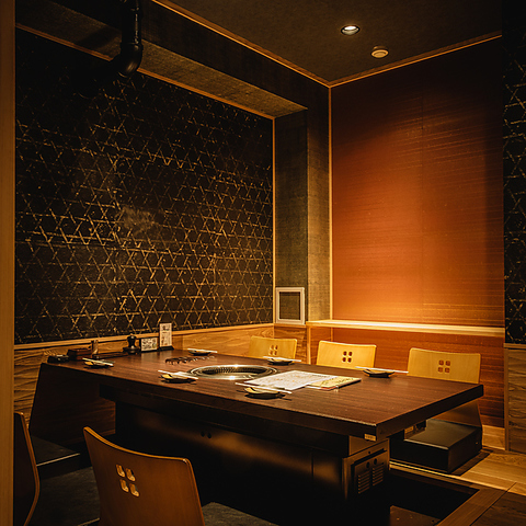 豪華な和モダンの雰囲気で贅沢に焼肉を頂く…。最大12名様までテーブル席のご利用OK