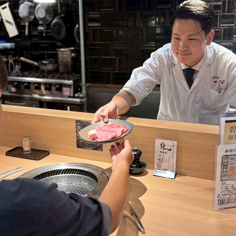 【カウンター席:デートに◎】職人が肉をさばく姿が見られるカウンタ席はデート、記念日に人気のお席♪