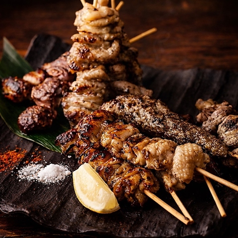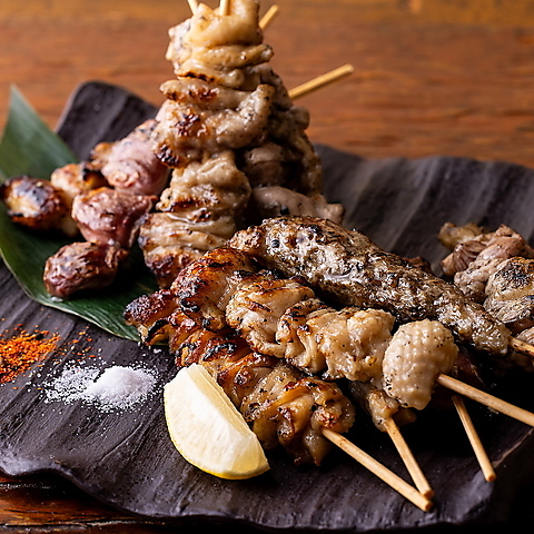 備長炭で一本一本丁寧に焼き上げた、香ばしい焼き鳥の盛り合わせ。もも・ねぎま・つくねなど、人気串を中心に旨みと香りを堪能できる逸品。焼きたてならではのジューシーさをご賞味ください。