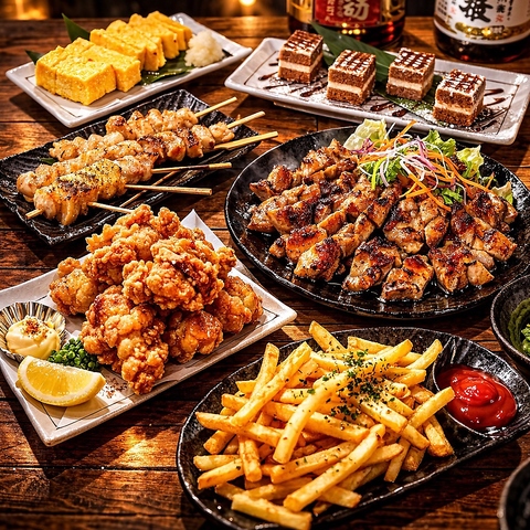 焼き鳥・唐揚げ・鍋・揚げ物など、人気の居酒屋メニューを出来立てで味わえる満足度抜群の食べ放題コース。豊富なメニュー構成と飽きのこない味付けで、友人同士の飲み会や宴会にも大好評。コスパも味も両立した当店自慢の食べ放題プランです。