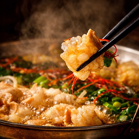 国産牛もつを贅沢に使用した本場博多仕立ての特製もつ鍋。コク深いスープがもつの旨みを引き立て、野菜の甘みと溶け合う絶品の味わい。寒い季節にぴったりの人気鍋です。
