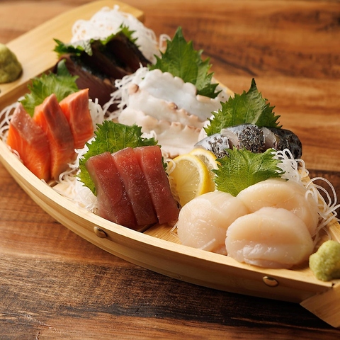 築地より直送された朝〆鮮魚を贅沢に五種盛り合わせ。旬の味わいと鮮度が際立つお造りは、口に入れた瞬間にとろける極上の旨み。季節ごとの魚介をお楽しみいただけます。