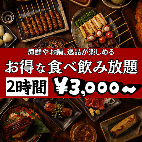 驚きの価格でこだわりの逸品が食べ放題!人気メニューを厳選した大特価コースを3,000円からご用意しております。新鮮な食材と熟練の技が光る当店の味を、お腹いっぱい心ゆくまでお楽しみください。ご宴会や打ち上げにも最適な、コスパ最強の自信作です。