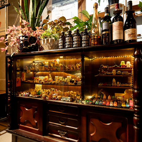 アンティークの照明と木の温もりが心地よく、ゆったりと過ごせるイタリアンバルです。手作りの本格ソーセージや前菜を、アットホームな空間でお楽しみください。店内の食器棚には店主が集めた小物がたくさん!