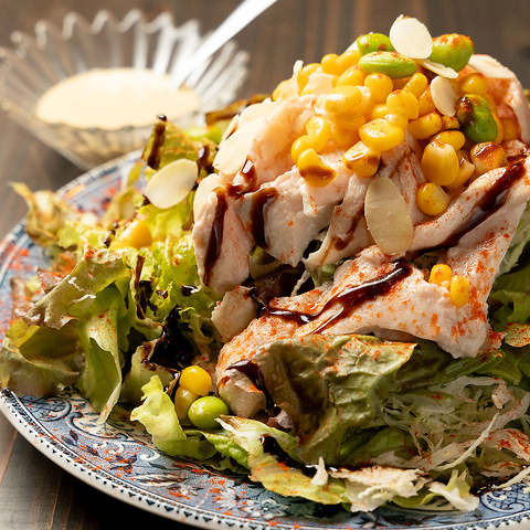 低温調理したしっとり鶏ハムが大人気!自家製のドレッシングも好評です◎人気No. 1サラダ