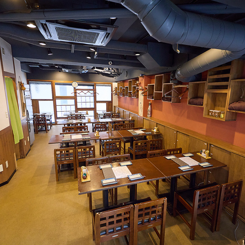 木の温もりも感じられるアットホームな店内は、ついつい長居したくなる居心地の良さ◎お席は2名様や4名様のテーブルなどご用意。人数に合わせて繋げることも可能なので、仕事帰りの飲みや友人・同僚との気軽な飲み会、デート、ご家族でのお食事など幅広いシーンでご利用いただけます!