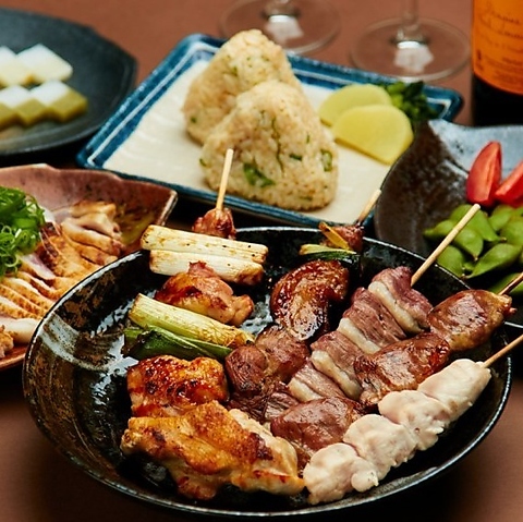 ささみ焼き・河内鴨の炙りロース串・プリマス(若鶏のねぎま)・自家製つくねといった焼きものや、河内鴨の炊き込みご飯など、お店の大人気メニューが食べられるお得なコースをご用意しています◎飲み放題付だから、ビールや焼酎などお好きなお酒も料理と一緒に楽しめます♪