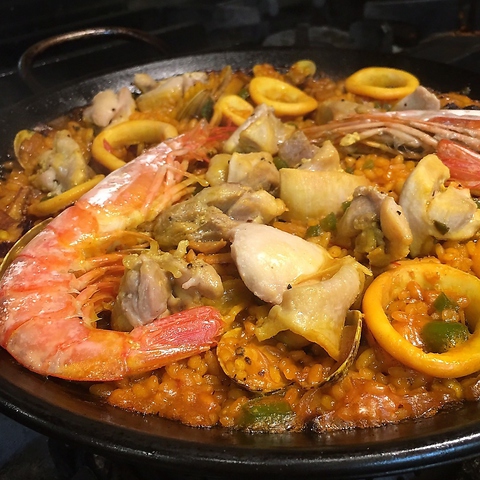 前日までのご予約をお願いいたします。魚介たっぷりのパエリアは2人前~♪魚介の味たっぷりの絶品です!