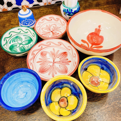 店主自らチョイスしたスペインの小物の数々♪カラフルなお皿は全て手書きの代物!インスタ映え必至です◎