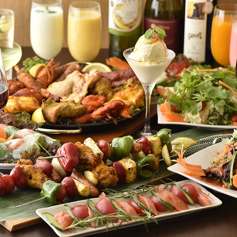 人気NO,1!食べ飲み放題コースをご用意しました☆『イクラたっぷり生春巻き』や『海老アボガドサラダ』などヘルシーな前菜をはじめ、食べ放題メニューは『タンドールBBQ』や『バターチキンカレー』などお肉もがっつり召し上がれます。飲み放題はたっぷり2.5時間!各種宴会などにご利用ください。