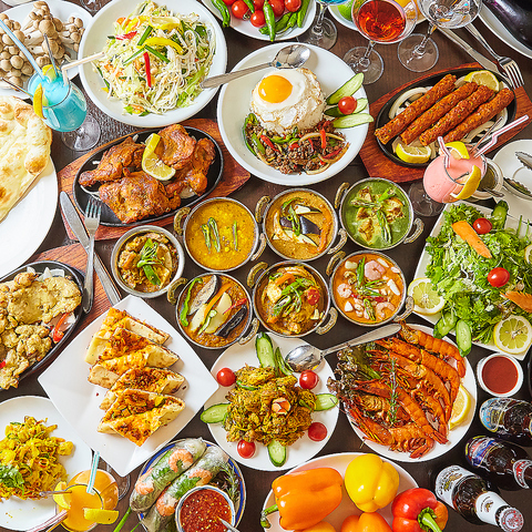 炭焼きタンドール料理からアジアのおつまみまで食べ飲み放題できるお得なコースもあり、各種宴会にご利用いただいております。100名様まで忘新年会、飲み会などの貸切宴会大歓迎です!