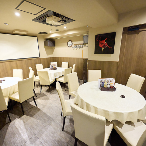 お互いの顔を見ながらお食事を楽しめる円卓のテーブル席をご用意!個室は、6名様・8名様・20~30名様でご利用可能◎貸切は20~24名様まで承っております。プロジェクターもご用意しており、会社宴会やご友人とのお集り、二次会など様々なシーンでご活用いただけます!店舗貸切は50~68名様まで対応可能!大型宴会にも是非!!