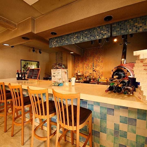 カウンター席からは、当店自慢の薪窯でPIZZAが焼きあがるのをじっくりご覧いただけます。ピザ生地を伸ばすところから焼きあがるまでの臨場感を体感してください☆
