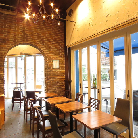 天井が高く広々とした開放感あふれる店内。全48席をご用意しており、昼は自然光が差し込む明るい雰囲気でランチやカフェを、夜は温かみのある照明が特別な時間を演出。パーティーや女子会、各種ご宴会など様々なシーンでご利用いただけます。開放的ながらも落ち着いた雰囲気の中で、ゆったりと流れる時間をお楽しみください。