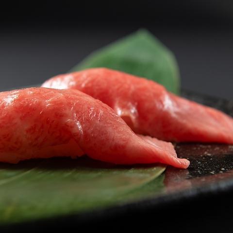 仁自慢の山形牛握り。この一貫の為にご来店されるお客様もいらっしゃるほど!ぜひご賞味頂きたい逸品です。