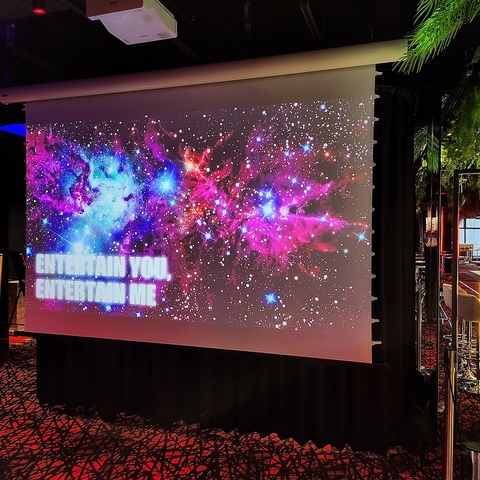 120インチスクリーン・ワイヤレスマイク・音響設備・映像設備お使いいただけます。大型スクリーンでスポーツ観戦も日により行っております◎自由にレイアウト変更可!皆様だけのパーティをお作りいたします!※画像はイメージです。
