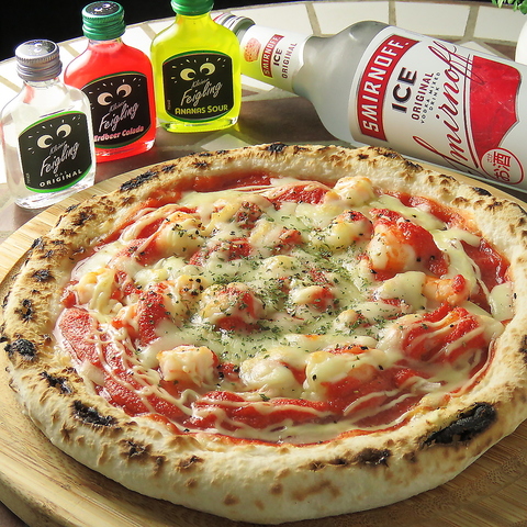 当店おすすめ人気No.1!の海老マヨ明太子ピザ!イタリアンシェフが焼いた生地に当店おすすめの具材を乗せオーブンで調理した本格ピザ。当メニュー目当てのご来店もあるリピートしちゃう一品!