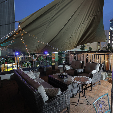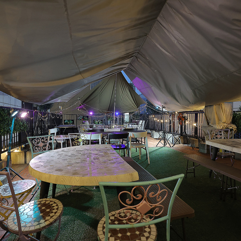 夜景とイルミネーションで特別な時間を♪屋上のテラスに巨大テントがございます♪グランピング女子会も♪