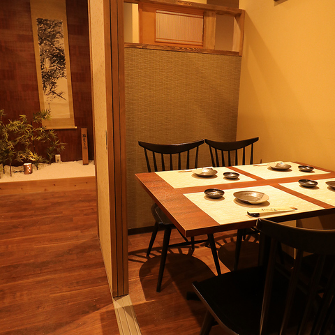 【2~4名様テーブル個室】和モダンのおしゃれなテーブル席。デートや少人数の飲み会に◎落ち着いたテーブル席は、ご友人との集まりや気兼ねなく語り合うコンパなどの食事会、同僚との飲み会などに最適なお席です。
