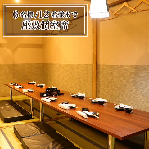 和の調度品が配され、落ち着いた雰囲気のお座敷個室は、2名~最大86名様までご利用可能。2名の個室はデートに、また中人数のお部屋は大人の飲み会や、顔合わせなど大切な宴にもご利用頂いております。個室のお席は人気のため、早めのご予約をお願い致します!飲み会・各種宴会にも♪※NET予約は最大32名様まで対応