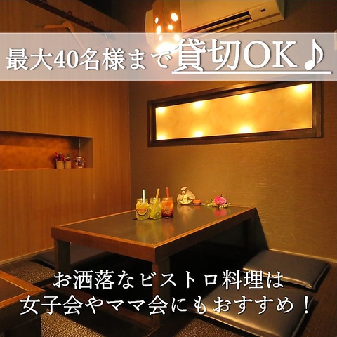 貸切大歓迎!!最大40名様までOKの店内は、歓送迎会や女子会、ママ会にも…ゆったりお寛ぎ下さい