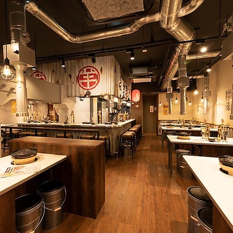 屋台を思わせる灯りのもと、臨場感溢れるカウンター席で自慢のお肉とお酒をお楽しみ下さいませ♪カウンターキッチンのライブ感がお料理をさらに美味しく引き立てます!少人数様でのご利用大歓迎!ちょい飲みやデートに♪