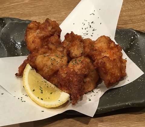 大きめサイズにカットした鶏もも肉を味付けして一晩寝かせた手間暇かけた自慢の一品です。2度揚げで仕上げた外の衣はサックサク、中のお肉は肉汁ジュワっとジューシーで食べ応えも抜群です!お子様から大人まで男女問わず大好きな唐揚げは注文必須です♪