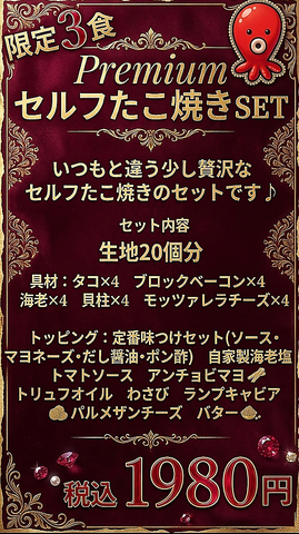 4月末まで期間限定のPremiumセルフたこ焼きセット登場!少し贅沢なたこ焼きで自分にご褒美あげませんか?