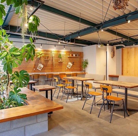 当店は様々なタイプの席をご用意しております。緑に囲まれた店内で、シーンに合わせてお好きな席でゆっくりとお過ごしください