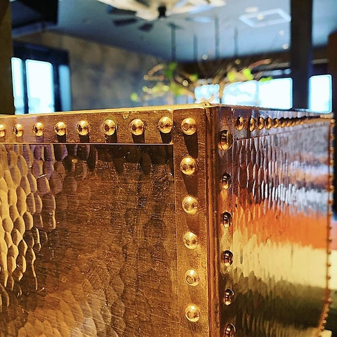 京都銅板の湯せん機を置いています。見た目の格好良さもさることながら当店のオススメ料理を温めてくれる画期的なアイテムです。特別に注文して作っていただいた代物なので、ぜひ当店にお越し下さった際はご覧ください。