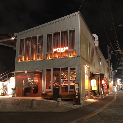 ”邑久十(オクト)”と格好良くデザインされたこだわりの暖簾と提灯がかかっているお店です。路面は、オープンスペースになっているので、暖簾からでもオープンスペースからでもどちらからでもお入り頂けます。