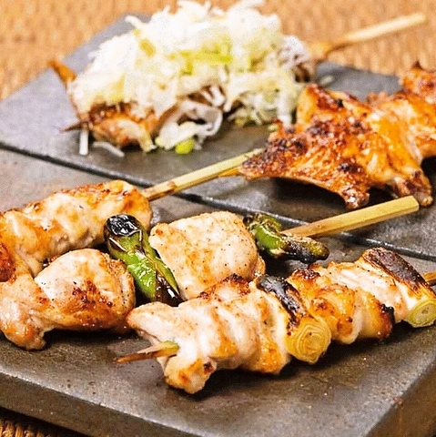 30種類以上のドリンクが含まれた飲み放題付きのコースをご用意。地鶏の旨みがギュッと凝縮されたこだわりのスープを使った「もつ鍋」を楽しめるコース、7種類の焼鳥を楽しめる「焼鳥三昧コース」、どちらも人気のコースです。新鮮な鶏肉を使用し、職人が丁寧に焼き上げた焼鳥は、どれも絶品。友人や同僚と一緒に、楽しい時間をお過ごしください