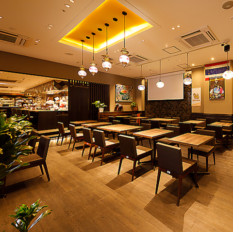 【店内貸切もOK!着席130名 立食なら最大150名様】広々とした店内で特別なひとときをお過ごしください!広々としたオープン席なので、おしゃれでキレイ♪宴会・女子会・合コン・達成会・同窓会・二次会などお気軽にご利用ください!