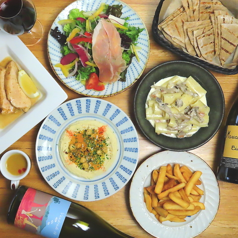 コース料理は全てシェアスタイルでの提供など、みんなでお食事を楽しめる当店。店内の雰囲気もアットホームでわいわいしながらリラックスできるような空間です。