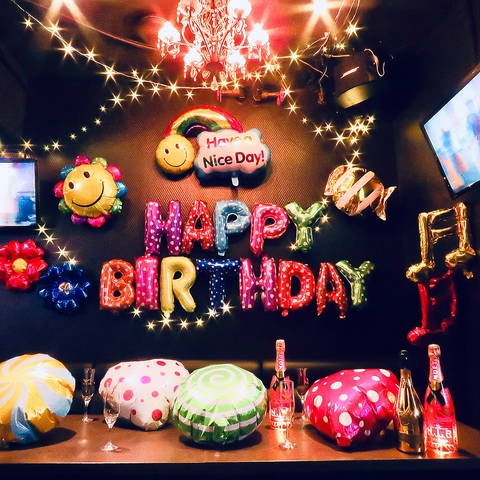 サプライズ演出を全力でお手伝い!店内装飾はご要望あればこちらで準備致します!!バースデーハットやフラワーレイなどのアイテムも無料で貸出♪三宮駅徒歩3分の駅近で使いやすさも抜群です☆